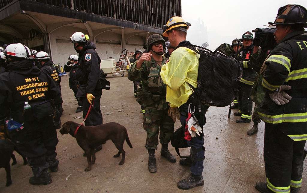 Massachusetts first responders at Ground Zero searching for survivors, September 14, 2001.