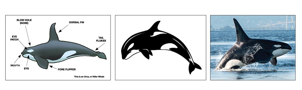 Talk About It! In your opinion, which illustration tells you the most about killer whales? (Diagram, drawing or photograph?)