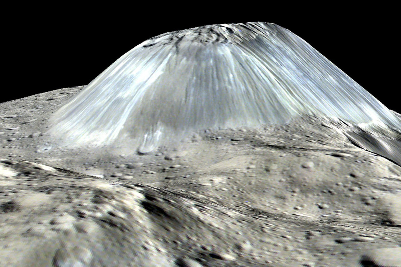 Look carefully at Ahuna Mons and the volcanoes on Earth. What looks similar? What looks different?