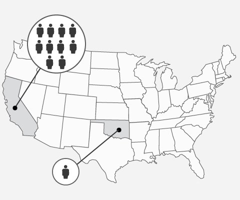 California has 10 times the number of people as Oklahoma. That’s a lot of people!