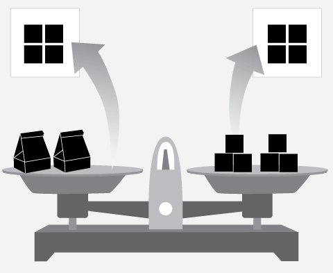 That leaves 2 bags on the left, 6 blocks on the right. If each bag has the same amount, then each has to have 3 blocks. And that’s it!