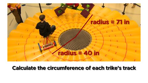 Then calculate the circumference of each trike’s track. Enter your answers in the notes box and explain your reasoning.
