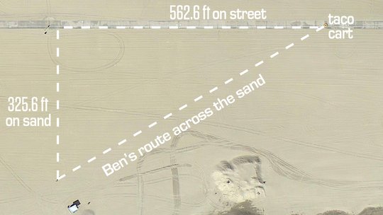 In the notes box below, explain how you would calculate Ben’s distance across the sand.
