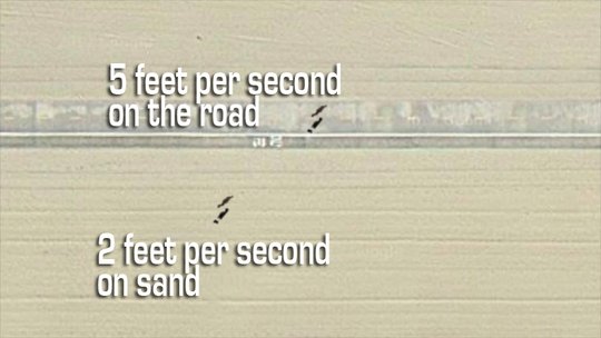 Here is the speed Dan and Ben can travel on the road and on sand: