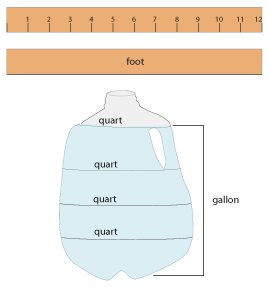 Each of these ratios contains equivalent measurements: 1 foot is the same as 12 inches, for example, and 60 minutes is the same as 1 hour.