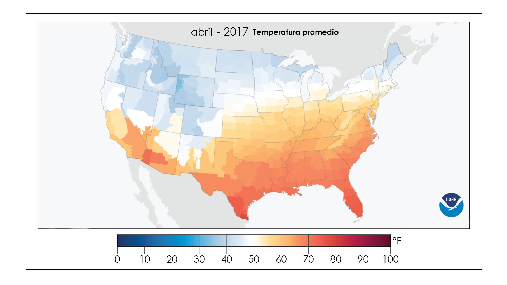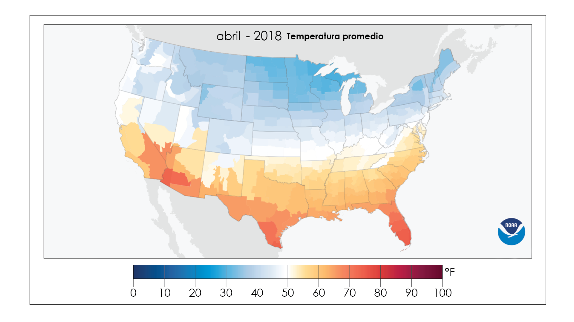 Los datos de estos mapas muestran la temperatura promedio mensual de abril en diferentes años. Los meteorólogos pueden comparar las temperaturas en diferentes áreas y observar si la temperatura de una estación cambia o se mantiene constante a lo largo del tiempo.